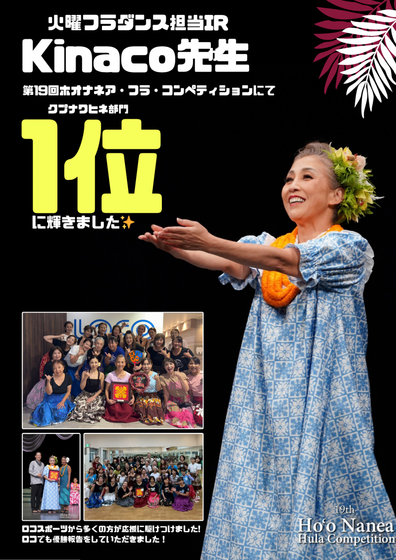 火曜フラダンスのKinaco先生が大会で1位になりました✨
