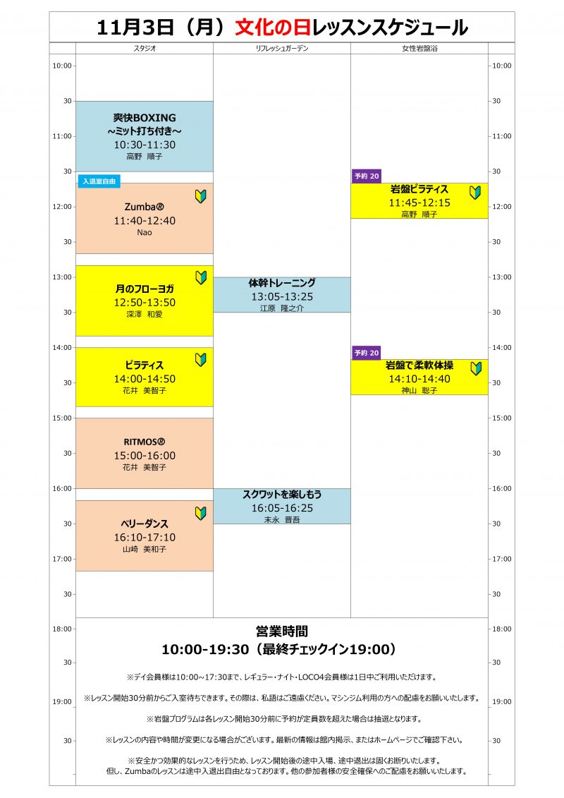 2025年11月3日(月) 文化の日 レッスンスケジュールです